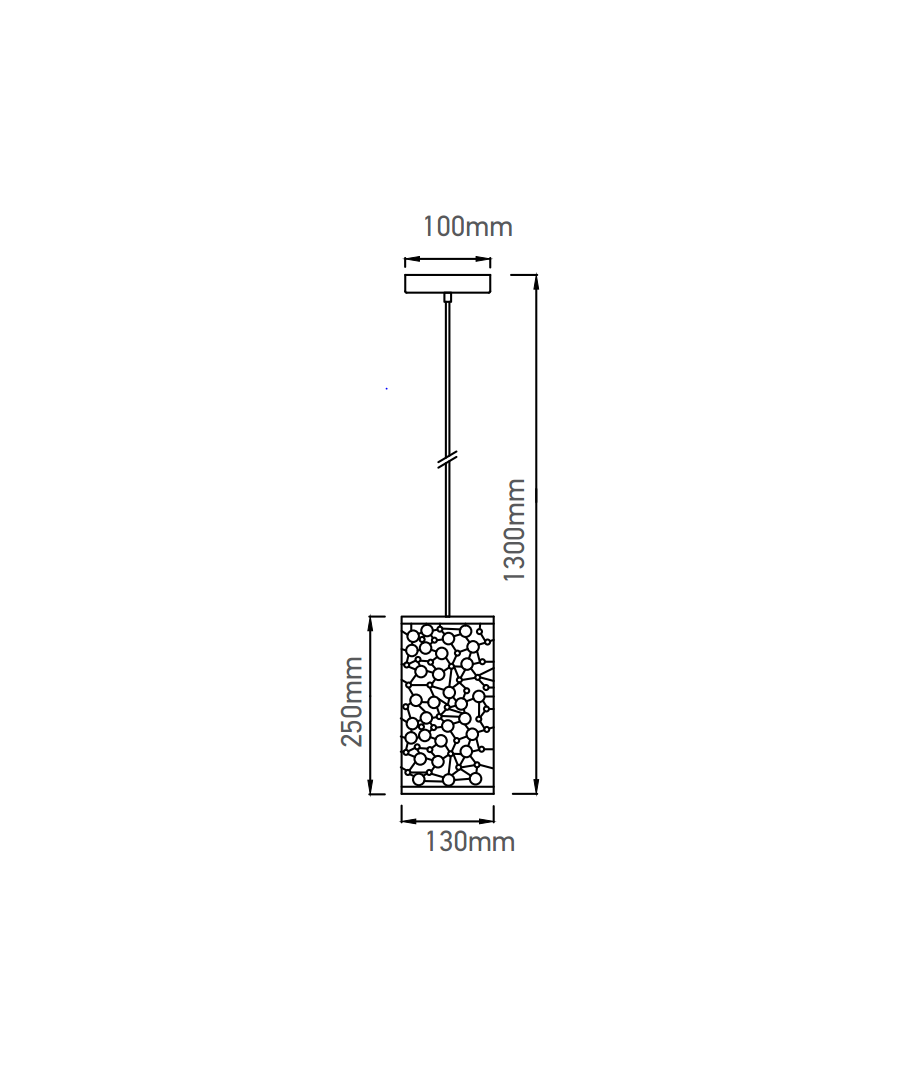 Med dimensjoner på 130 x 250 x 1280 mm, er denne pendellampen designet for å henge vakkert over både spisebord og kjøkkenbenk. Lampens lengde sikrer optimal belysning og gir rommet en følelse av balanse og symmetri.
