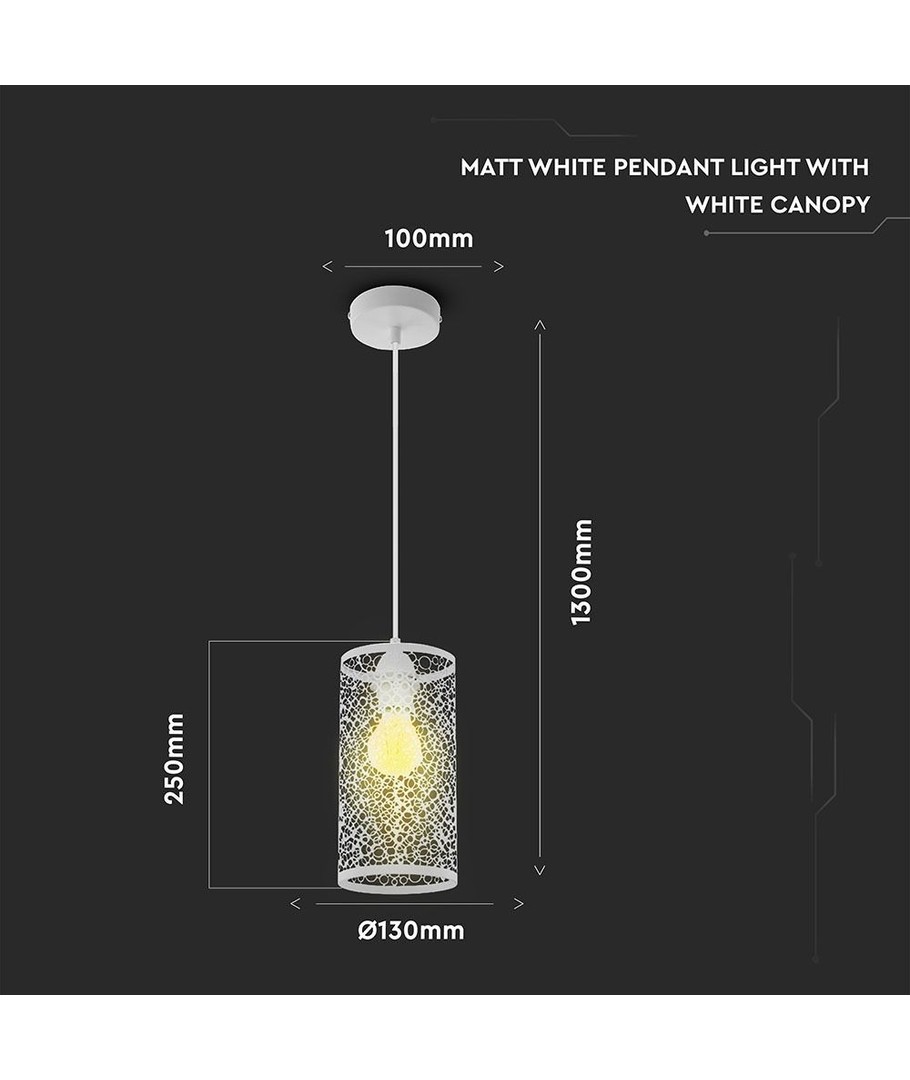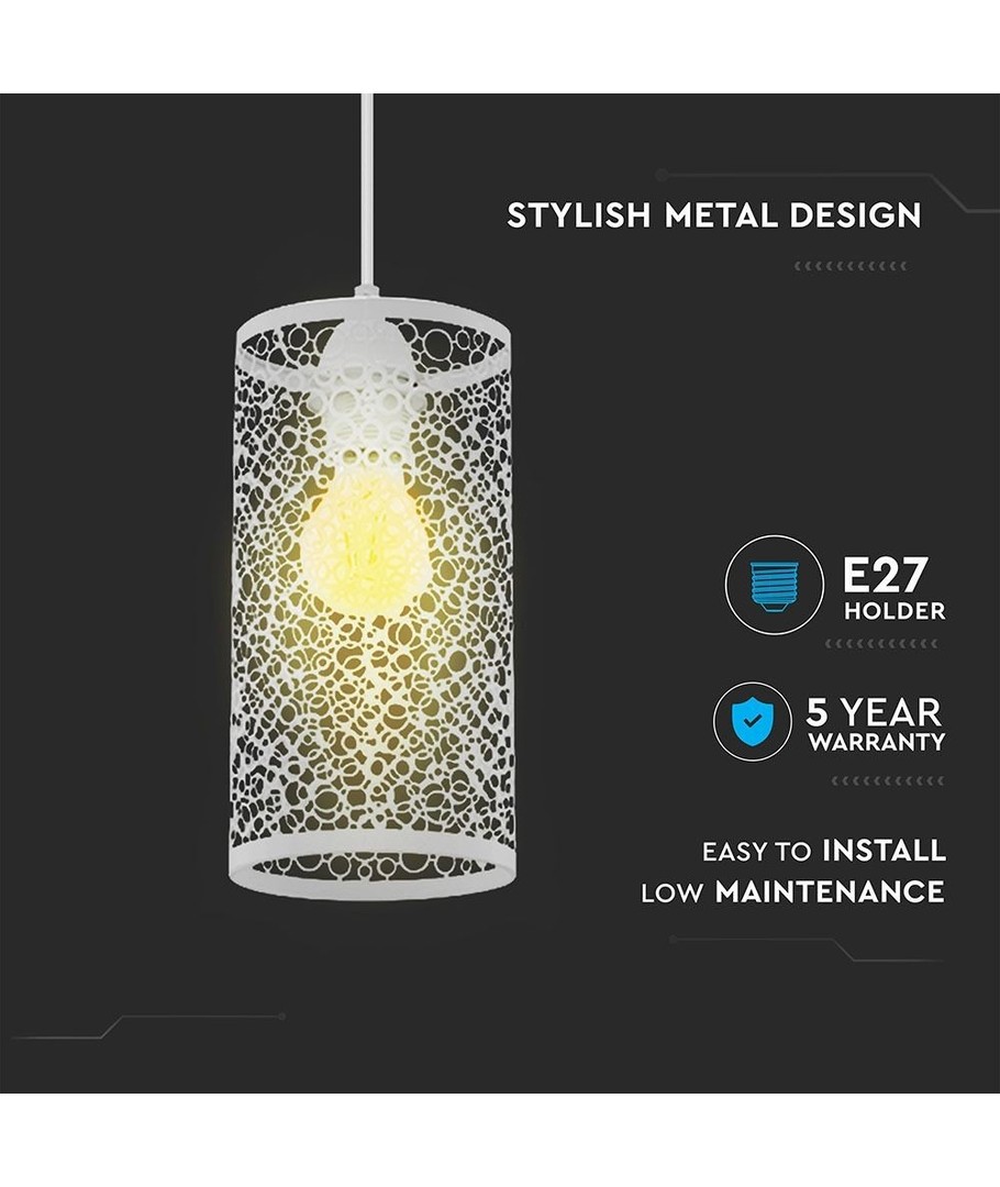 Legg til et moderne og elegant preg på hjemmet ditt med denne stilrene pendellampen fra V-Tac. Utført i matt hvit metall, gir denne lampen et tidløst uttrykk som passer inn i både moderne og klassisk interiør.