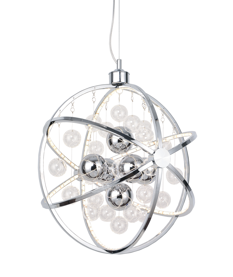 Galaxy Pendel i flott krom farge er utført i metall og glass, en annerledes fantastisk flott LED taklampe. Lampen har et futuristisk design og som navnet beskriver, gir det assosiasjoner til galaksen.
