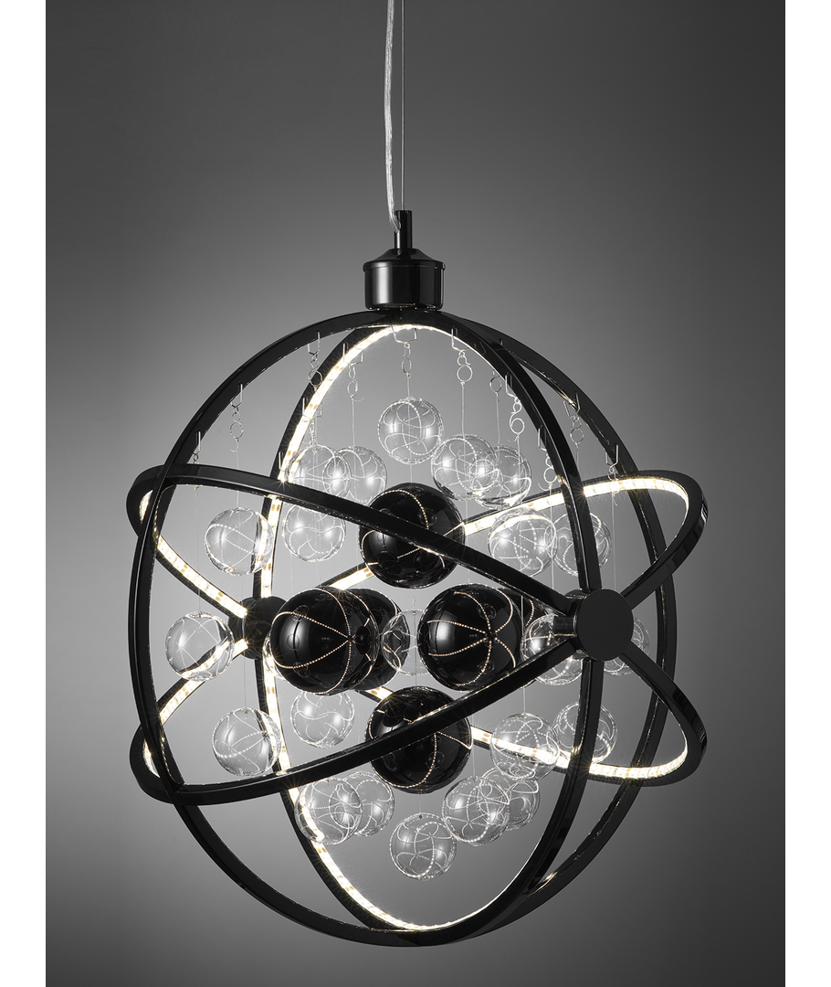 Galaxy Pendel i svart farge er utført i metall og glass, en annerledes fantastisk flott LED taklampe. Lampen har et futurisk design og som navnet beskriver, gir det assosiasjoner til galaksen.