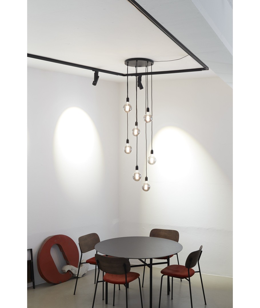 Elegant pendel fra Nielsen Light, med 7 stk. E27 fatninger og stoffledninger i svart.