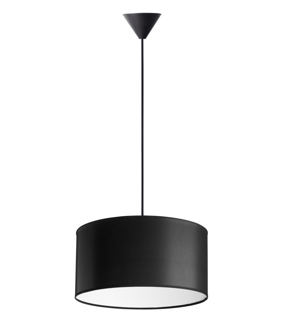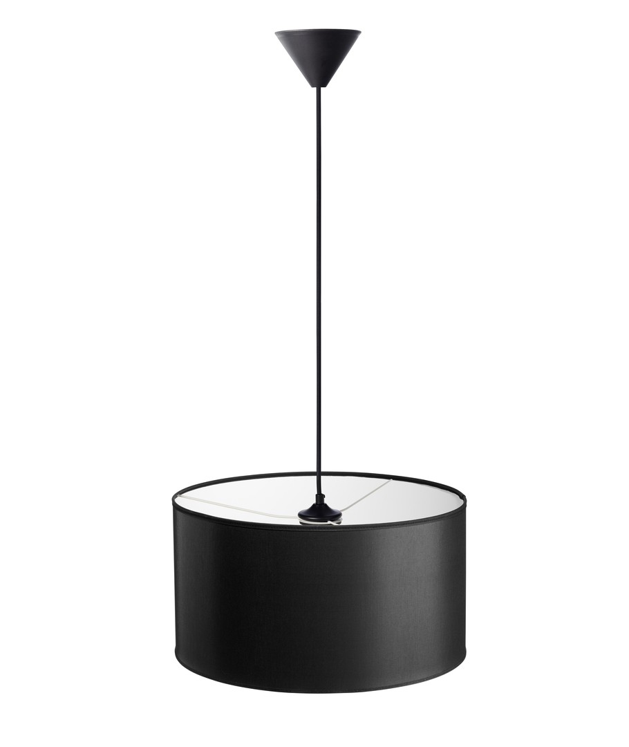 Lett og elegant pendellampe fra det danske Nielsen Light, som er hvit på innsiden og kledd med svart stoff på utsiden.