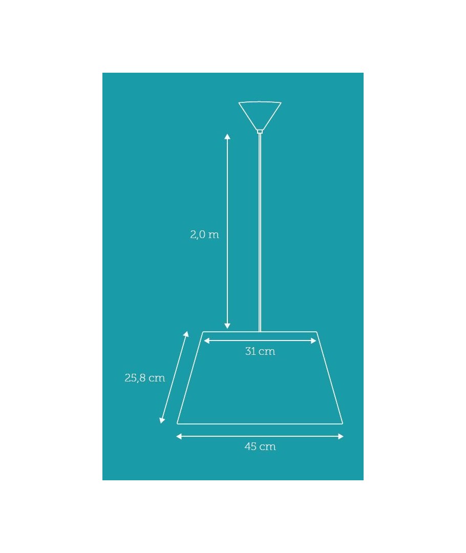 Selve lampen er 258 mm høy med en diameter på 450 mm i bunnen og 310 mm i toppen.