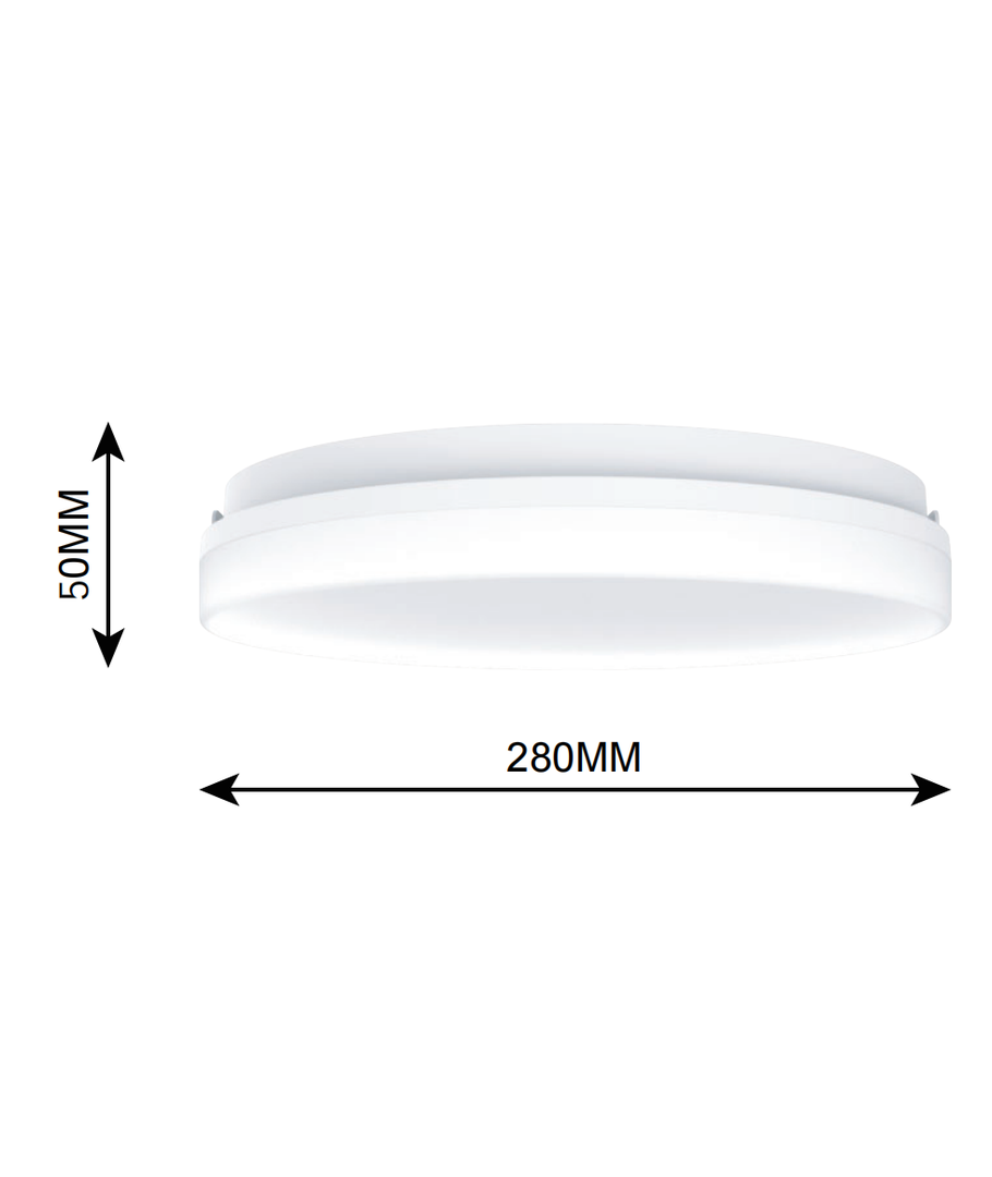 Ø28cm, Høyde: 5cm, IP54, hvit kant, inkl. lyskilde