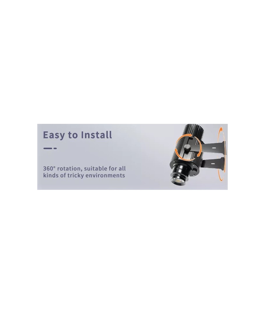 Projektoren kan lyse din logo opp på vegg, tak eller lignende med avstand mellom 1-5 meter.