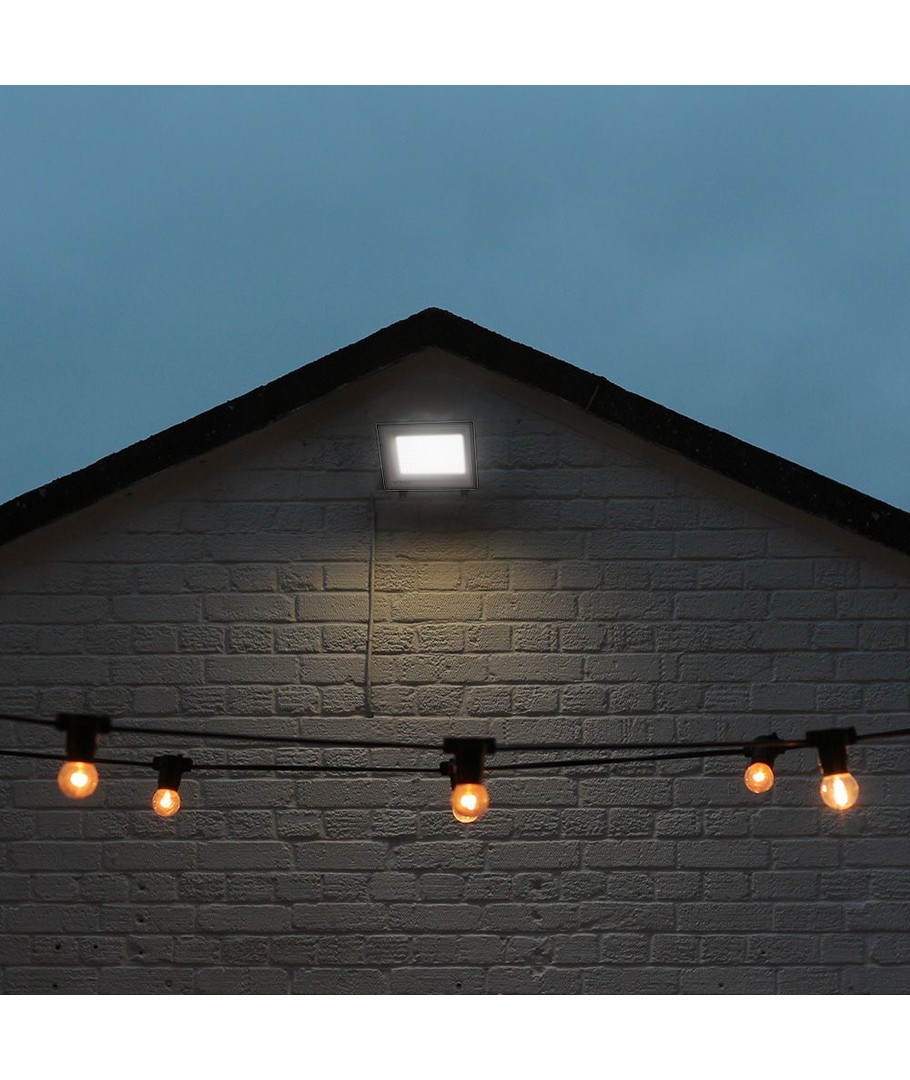 Denne LED projektøren kommer i en kompakt størrelse på 171 x 176 x 26 mm, noe som gjør den lett å plassere hvor enn det er behov. Med en IP65-sertifisering, er projektøren bygd for å tåle ulike værforhold, inkludert regn og vannsprut, og sikrer pålitelig belysning uansett omgivelsene.
