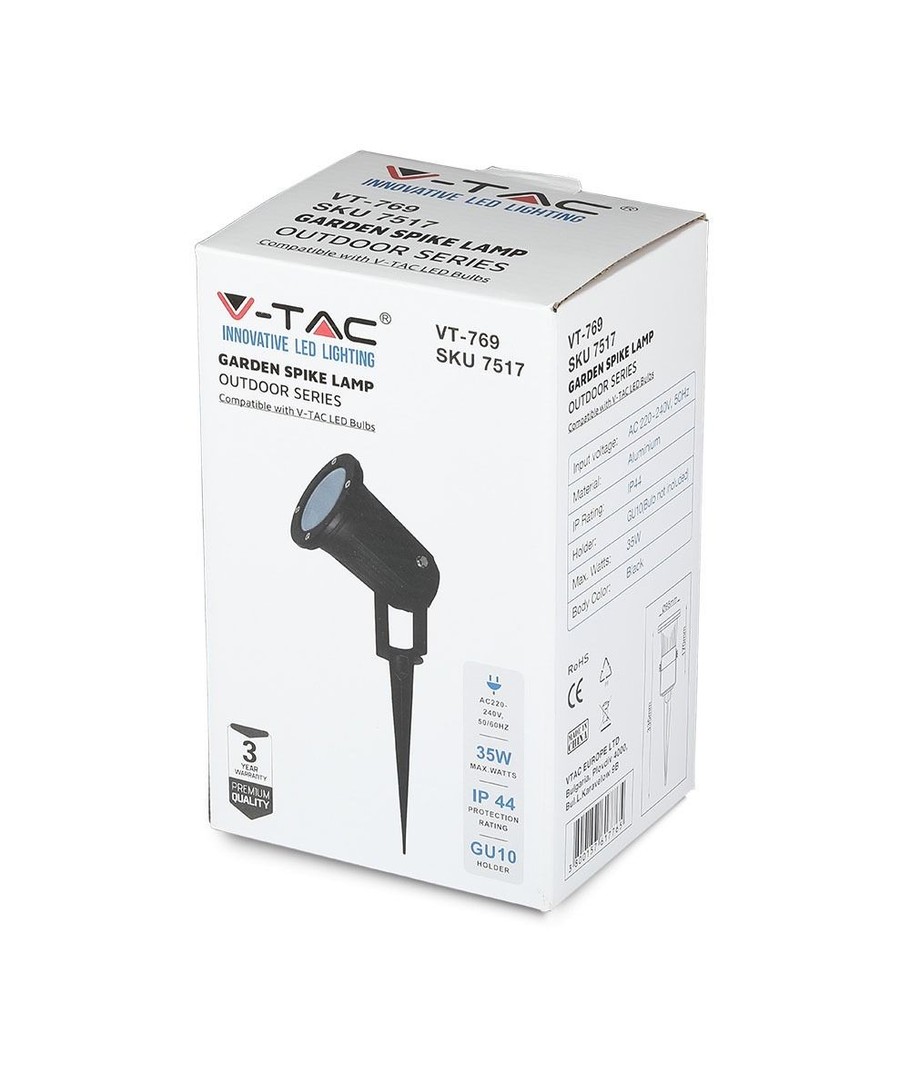 V-Tac hage lampe leveres uten lyskilde, slik at du kan velge selv hvilken GU10-pære som best dekker dine behov. Med dimensjoner på 335 x 95 x 95 mm, er det enkelt å finne plass til denne lampen, uansett størrelsen på hageområdet ditt. Lampen installeres enkelt ved hjelp av spyden, som sørger for stabilitet og fleksibilitet i plasseringen.