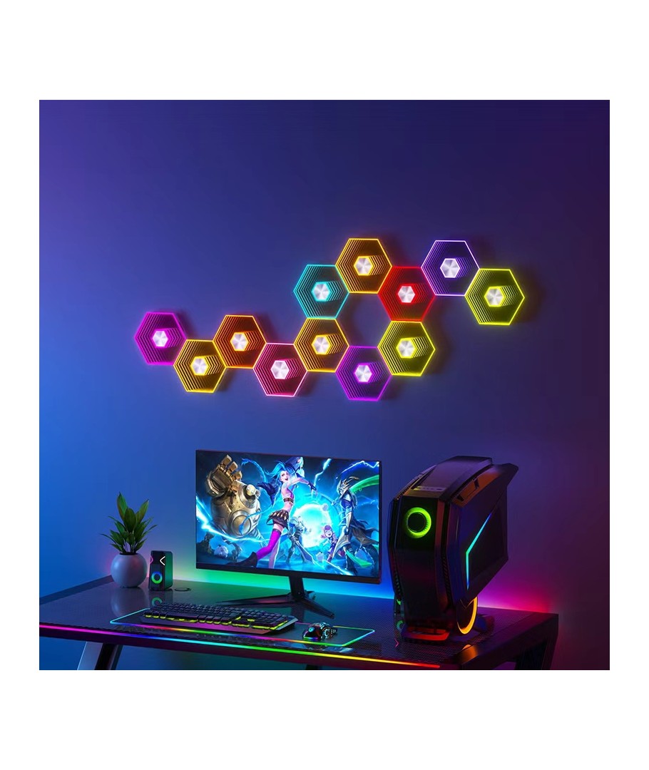 Lys opp gamingoppsettet ditt med RGBIC Hexagon Infinity Vegglamper – det ultimate lyset som forvandler rommet ditt til en RGB-drøm!