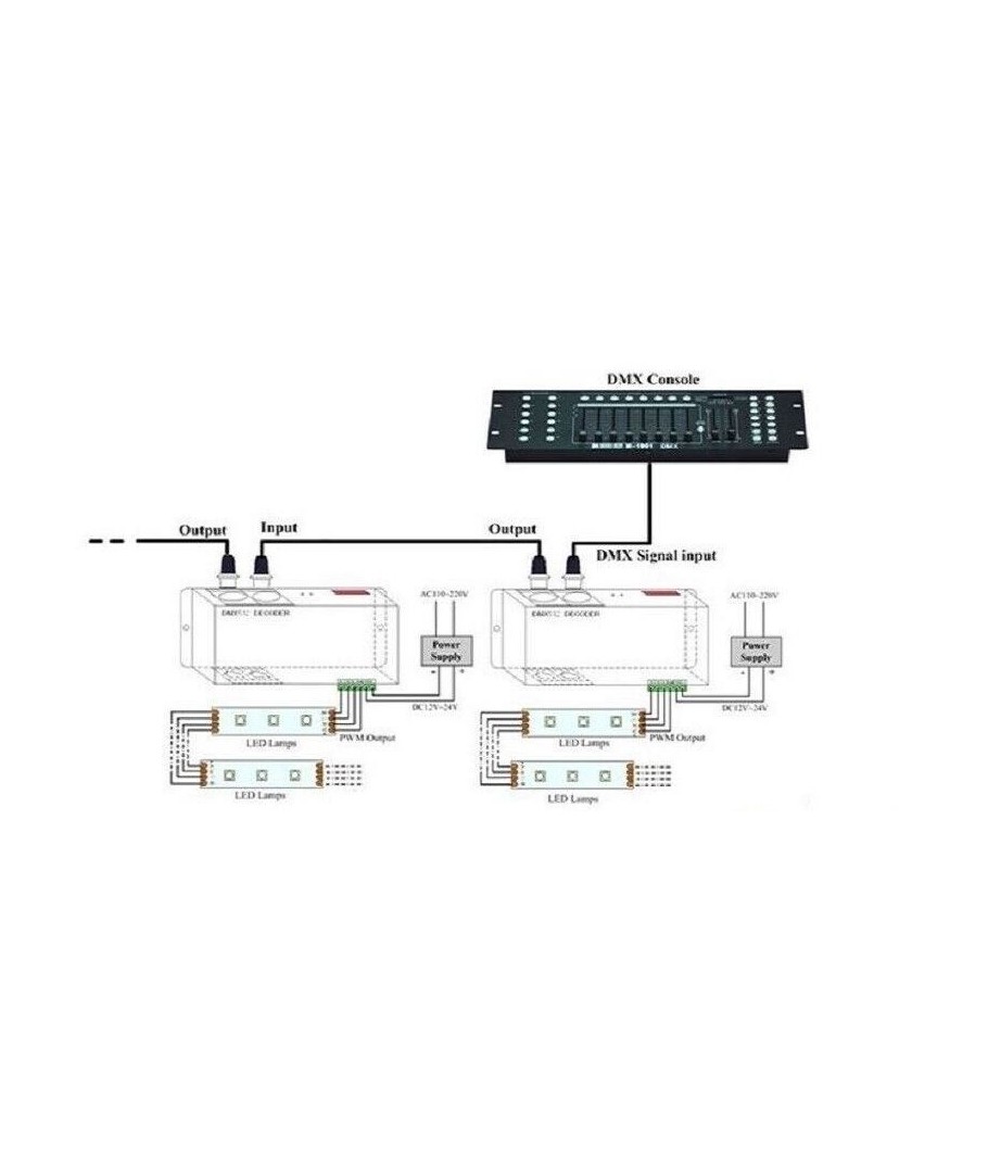 DMX 512 til både 12V (288W) og 24V (576W).