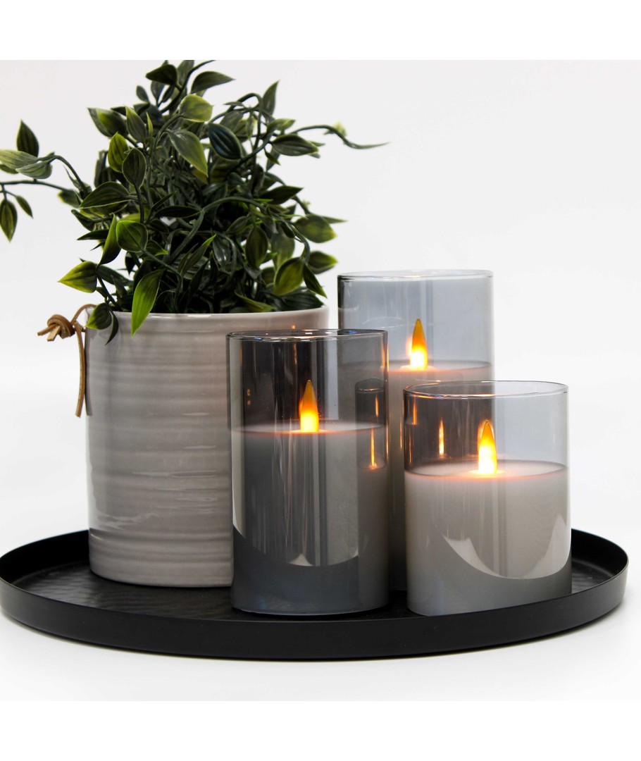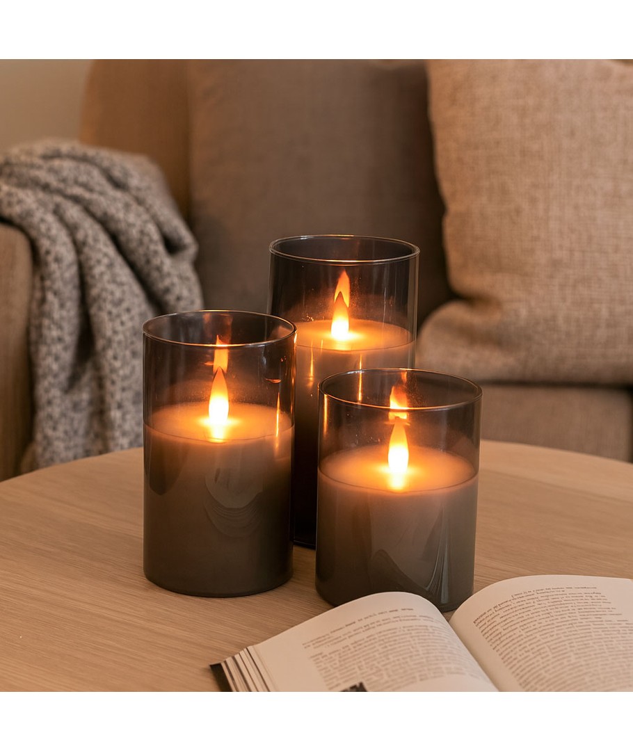 Opplev den koselige atmosfæren med vårt LED Blokklys sett i røyksfarget glass, som bringer eleganse og trygghet inn i ditt hjem.