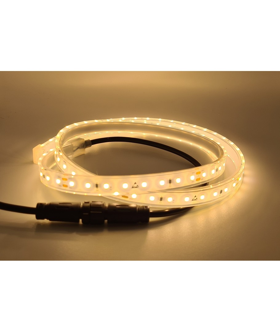 Med et kompakt design, 12 x 5 mm, og en robust IP68-klassifisering, er denne LED-stripen vanntett og kan brukes under vann opptil 1 meter. Perfekt for bruk i badstuer hvor luftfuktigheten er høy.