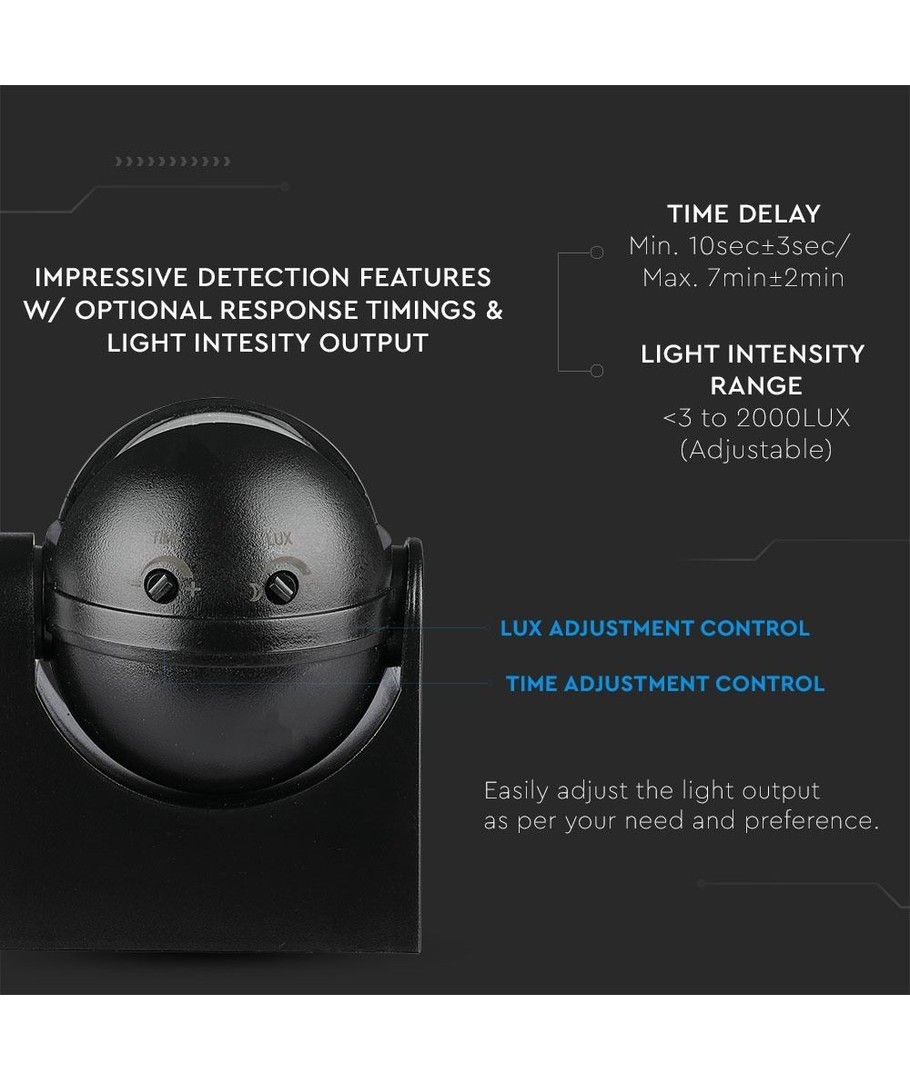 Du stiller selv inn hvor lenge du vil at lyskilden skal være tent etter at bevegelsessensoren aktiveres (Fra ca. 10 sekunder opp til ca. 7 minutter).