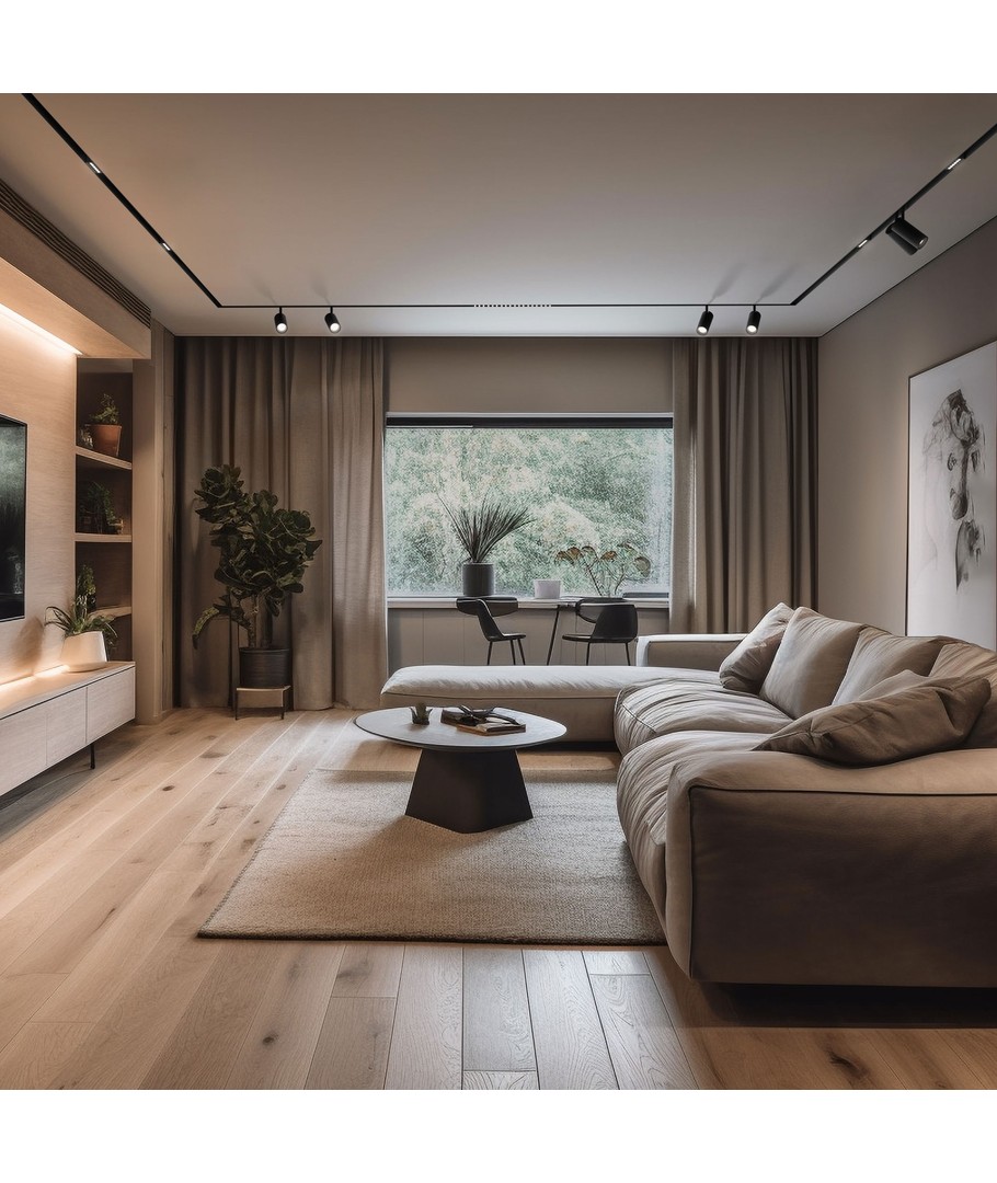 Spectrum SHIFT skinnespot 10W, en minimalistisk og nordisk designet LED-spot som gir retningsbestemt og konsentrert belysning.
