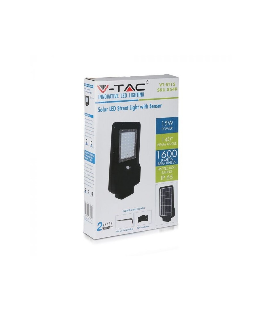 Opplev effektiv belysning med den innovative V-Tac 15W Solar gatelampen. Denne svarte lampen kombinerer solcelleteknologi med avansert LED-teknologi for å gi optimal belysning i utendørsområder.
