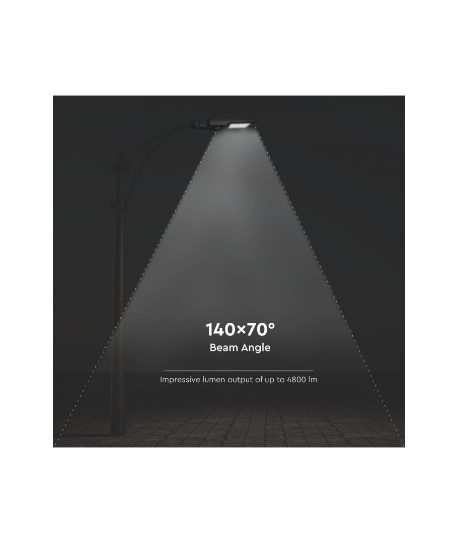 Lampens lysstyrke på 4800 lumen gir en strålende lysopplevelse, ideell for belysning av hager, stier og parkeringsområder. Takke være dens høye lyskvalitet med en RA-verdi på 80-85, kan du oppleve naturlig lys som vakkert fremhever alle farger, tilpasset de fleste belysningsbehov.
