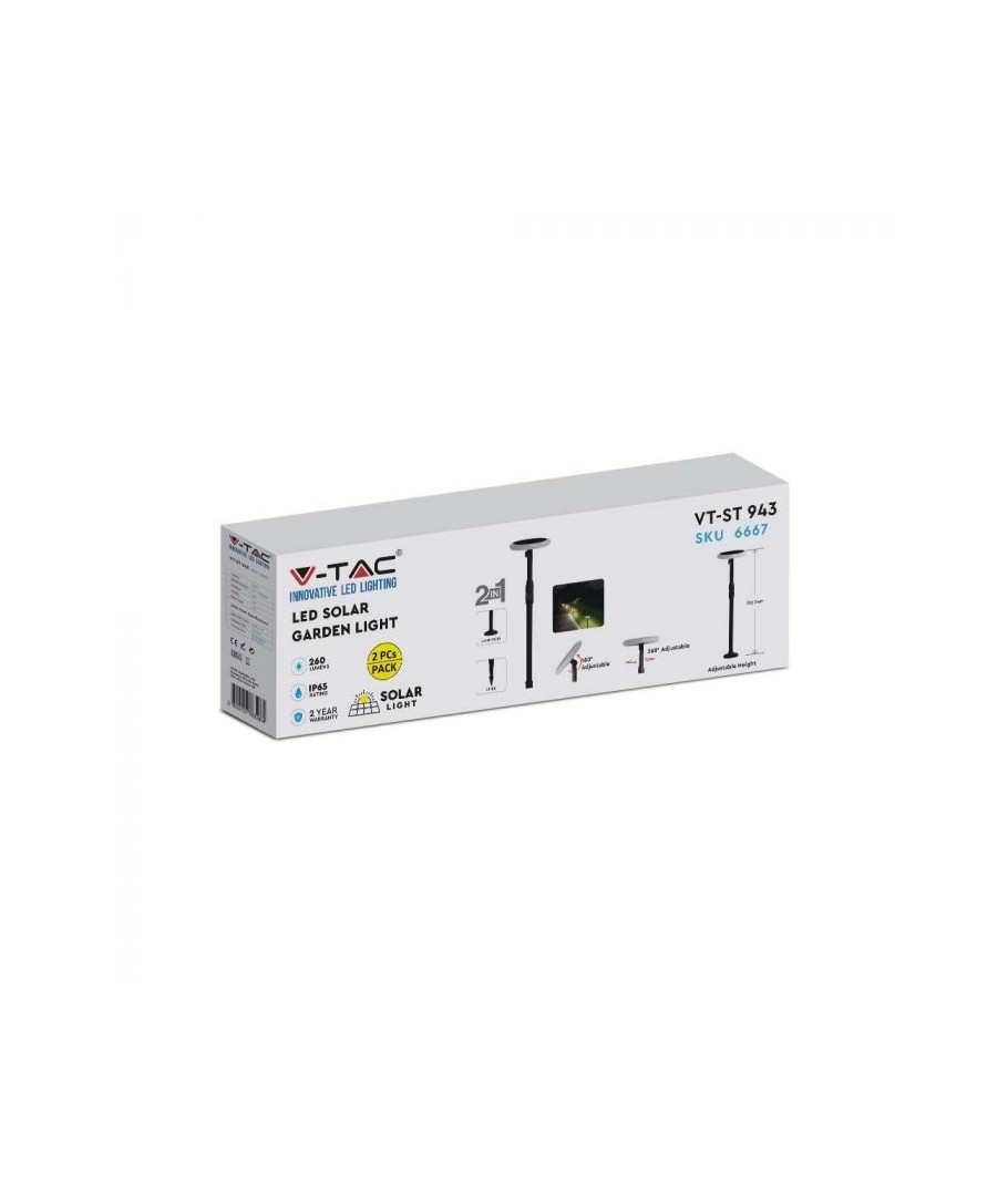 V-Tac 3W LED Solar hagelampe er den perfekte løsningen for utendørsbelysningen din. Den er justerbar i både hode og høyde, slik at du kan få det optimale lyset i hagen din.