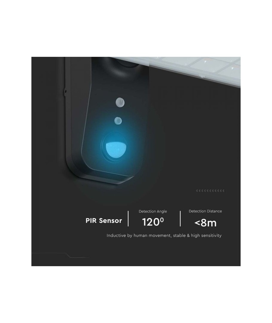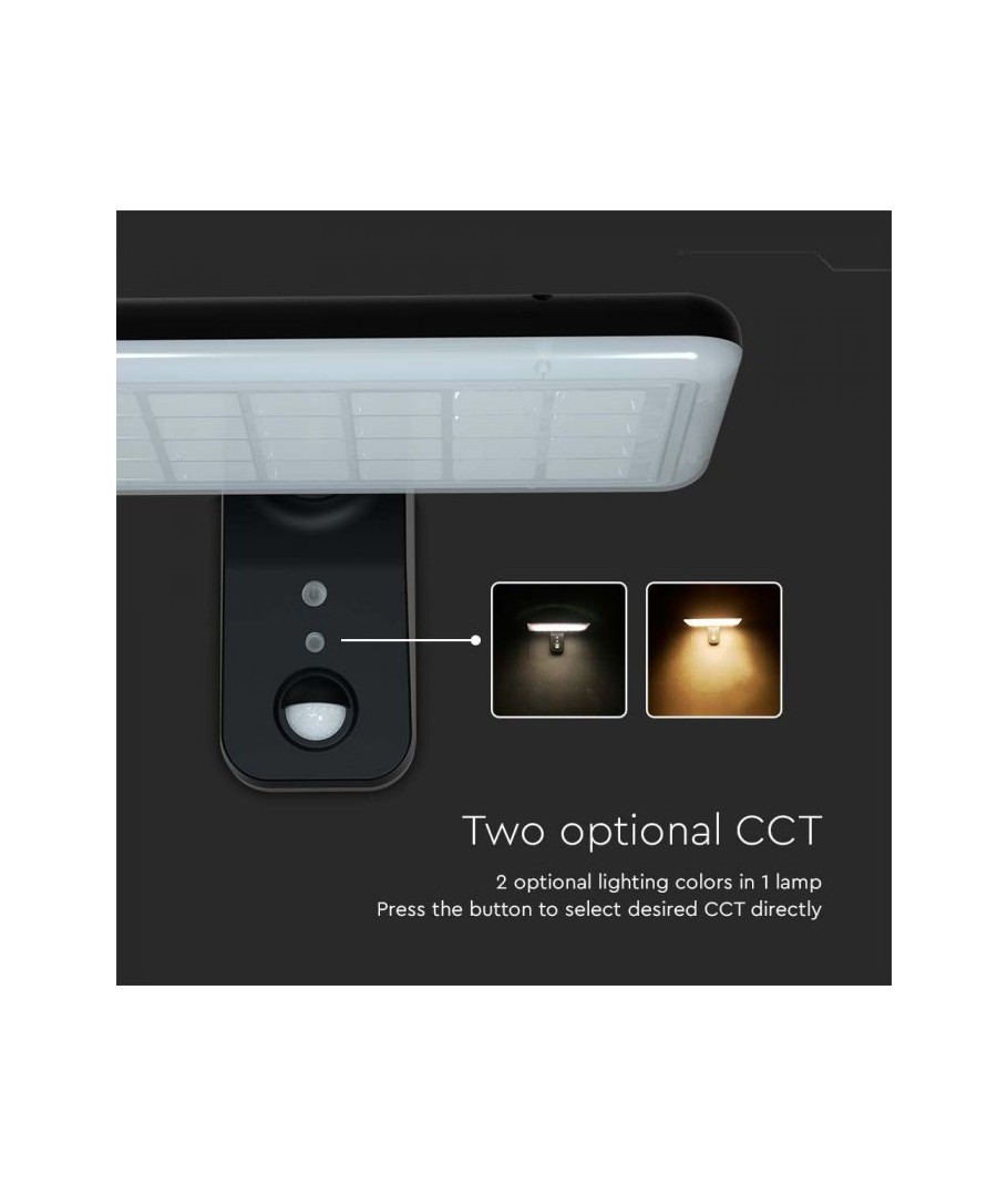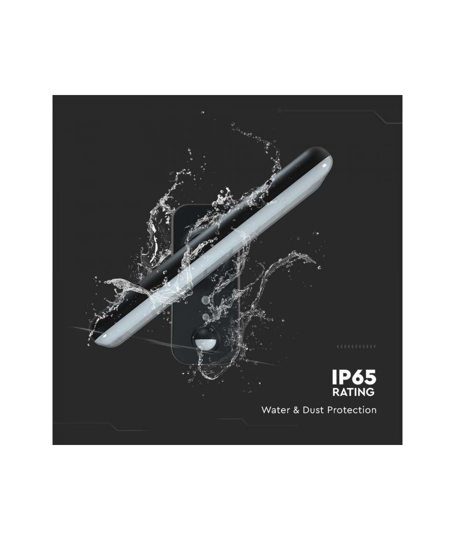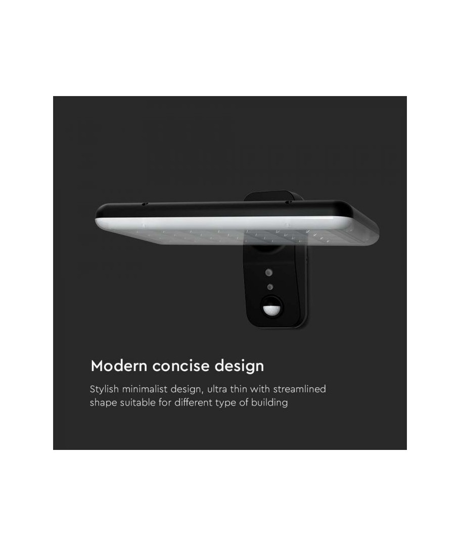 Oppgrader uteområdet ditt med V-Tac 15W LED Solar vegglampe. Denne sorte vegglampen er utstyrt med sensor og har høy beskyttelsesgrad IP65, som gjør den egnet for utendørs bruk.