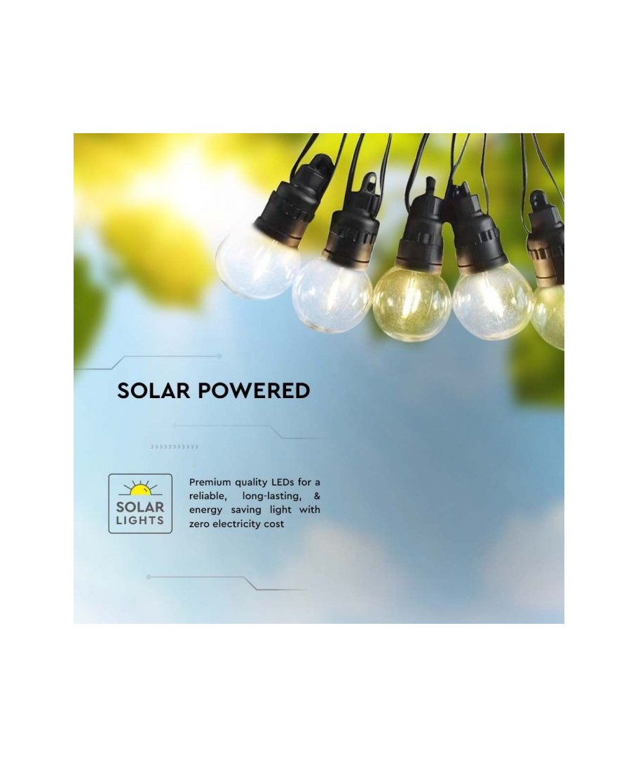 Oppgradér dine utendørsområder med V-Tac Solcelle lyskjede, og gled deg over et miljø som er opplyst av behagelig, varmende lys hver kveld!