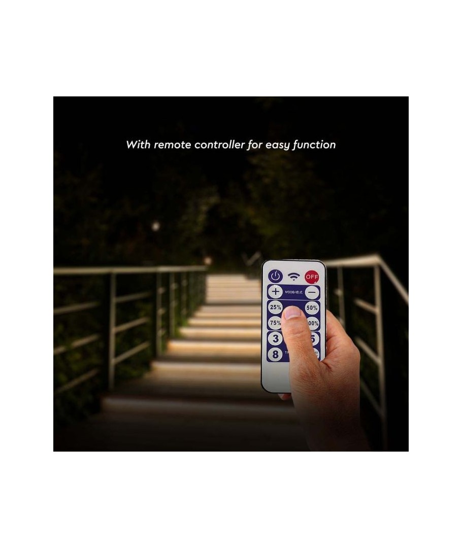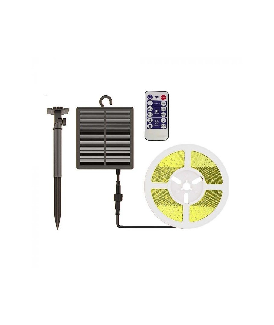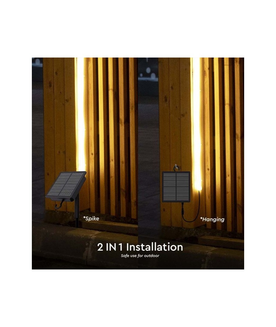 Denne 5 meter lange stripen er perfekt for hager, innganger og andre uteområder. Med sin IP67-klassifisering er den beskyttet mot støv og vann, slik at den tåler selv de mest utfordrende værforhold. Med den medfølgende fjernkontrollen kan du enkelt styre intensiteten på lyset og skape akkurat den rette atmosfæren. Solcellepanelet gjør det enkelt å installere og plassere det medfølgende solcellepanelet, da det kan henges eller stikkes i bakken.