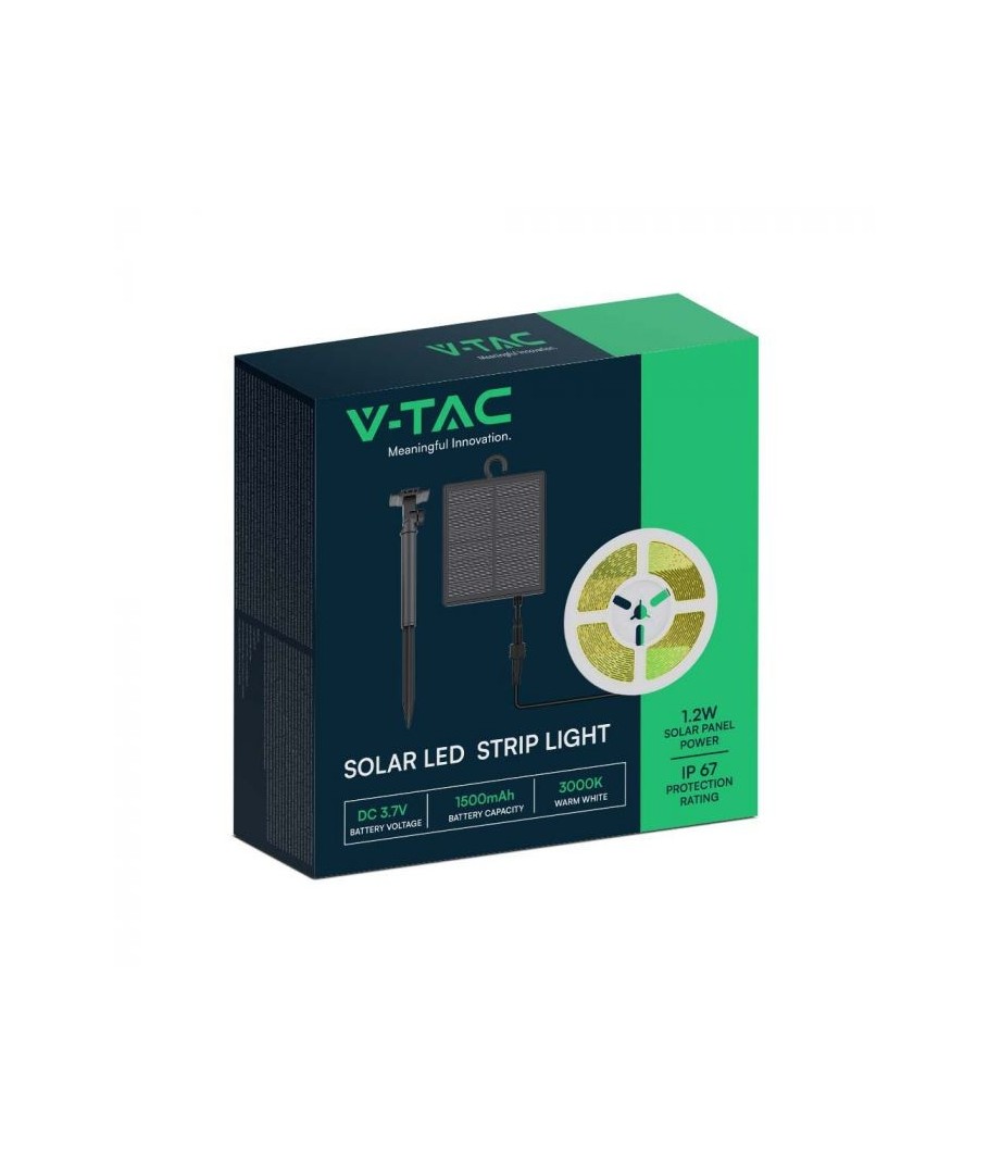 V-Tac 1,2W LED solcellestrip bruker bærekraftig energiteknologi, drevet av solceller, noe som gjør den ideell for miljøbevisste brukere som ønsker å redusere energikostnadene samtidig som de nyter moderne belysning. Den medfølgende fjernkontrollen gjør det enkelt å justere lysstyrken og bytte mellom fargetoner, noe som gir deg full kontroll over belysningen uten å måtte gå ut i det typisk norske været.