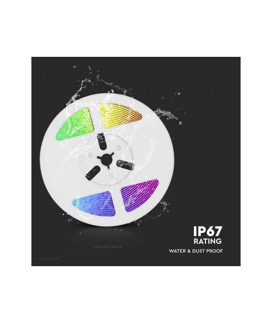 Designet med IP67-klassifisering, er denne LED-stripen motstandsdyktig mot vannsprut og støv. Den er perfekt for uterom, selv i fuktige omgivelser, men skal ikke være nedsenket i vann over lengre tid.
