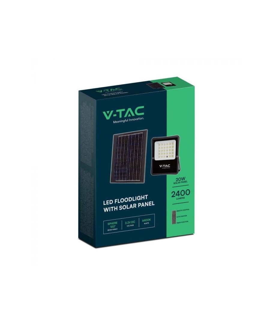 Opplev kraften i V-Tac 20W Solar flomlys LED, et utendørs lys med imponerende funksjoner som kombinerer teknologi med design. Dette flomlyset er utformet for å gi deg optimal belysning når som helst, takket være integrasjonen av solcellepaneler og en intuitiv fjernkontroll.