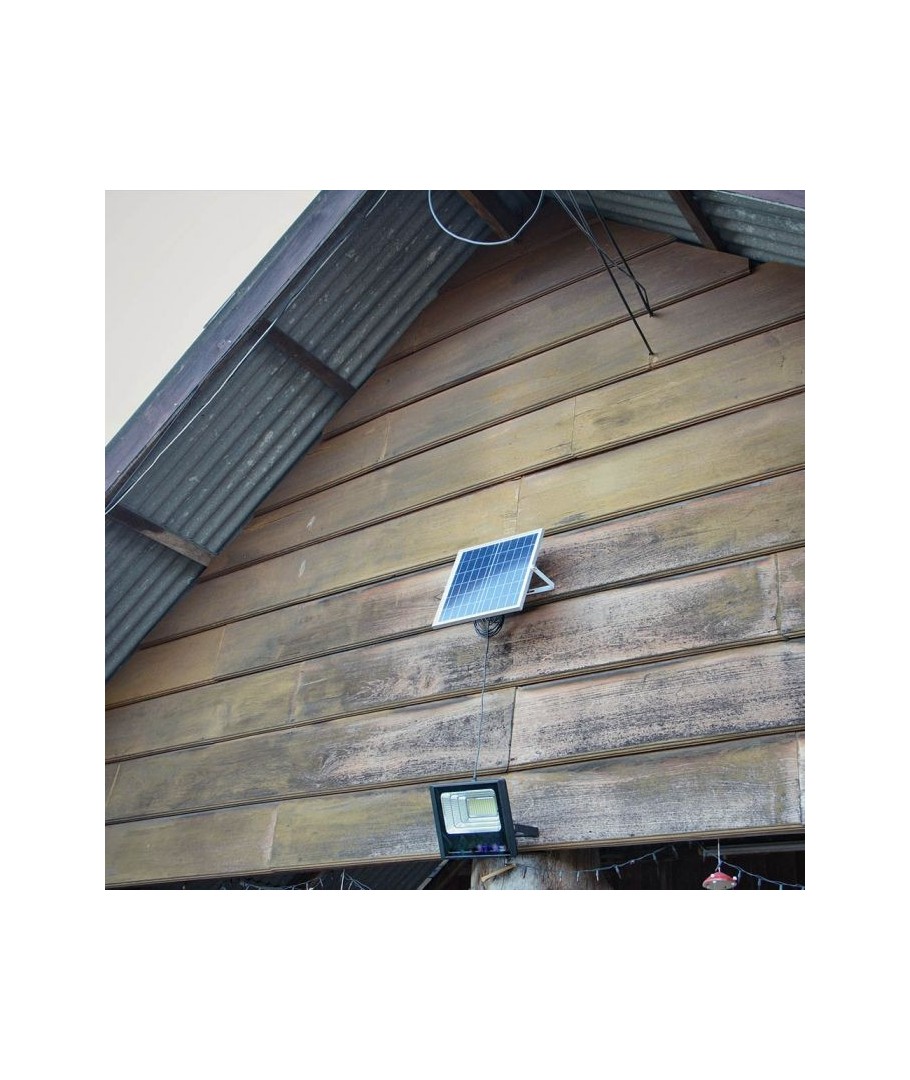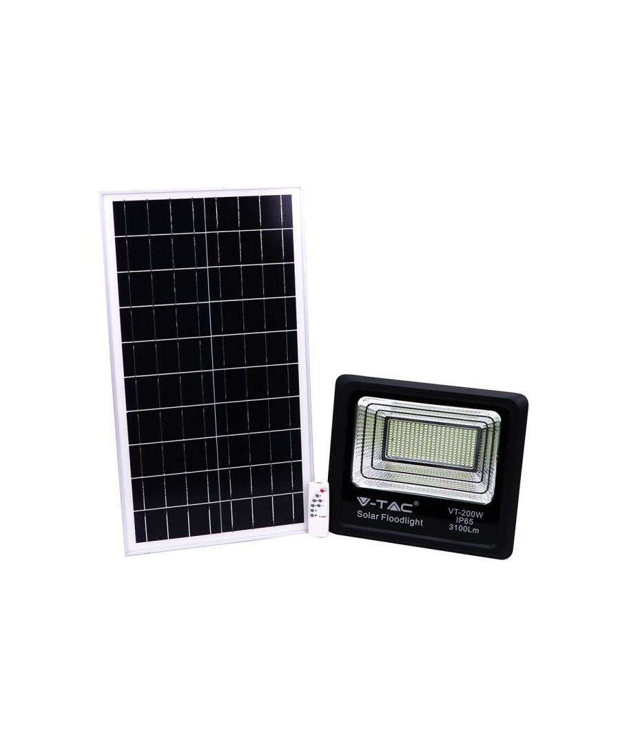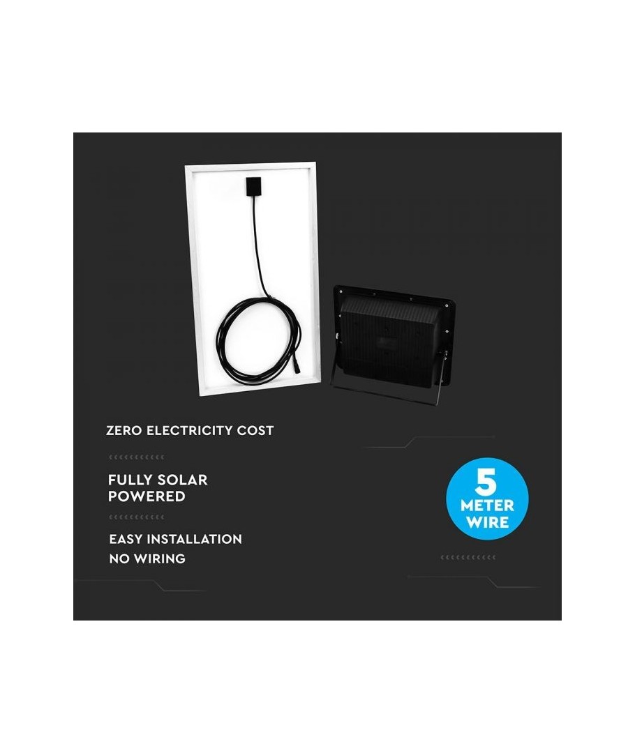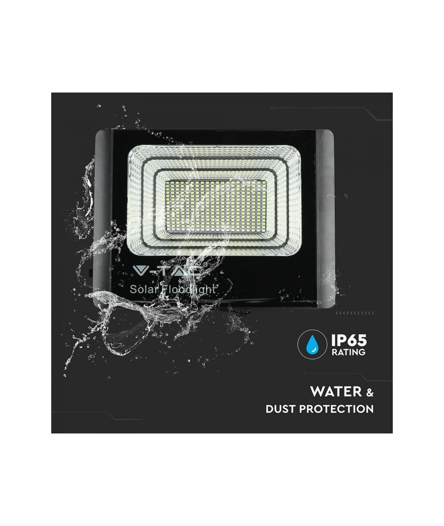 V-Tac 40W LED Solar flomlys - Sort, en praktisk og energieffektiv løsning for utendørs belysning. Denne lyskasteren inkluderer en solcelle og fjernkontroll og er designet for å tåle alle værforhold med sin IP65-klassifisering. Den har også en hendig timerfunksjon som lar deg stille den til å slå seg av automatisk etter en viss tidsperiode. Med en full ladetid på kun 4 timer kan denne projektoren gi 8 timer lys. Den kommer også med en 5 meter lang ledning, som gir deg fleksibiliteten til å plassere den der du trenger den.