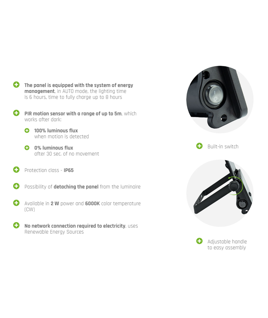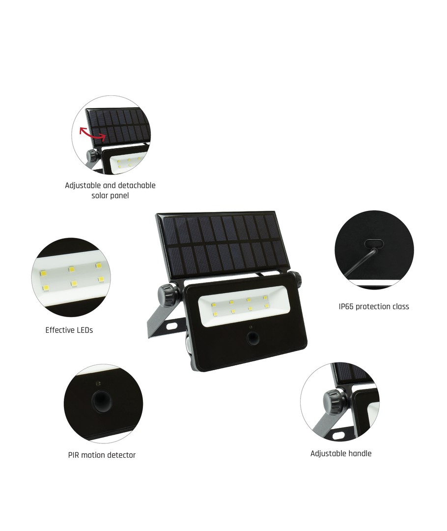 Solcelle prosjektør med innebygd PIR-sensor.