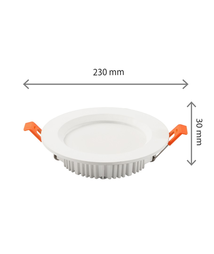 Med sin effekt på 28W, gir denne downlighten en imponerende lysstrøm på 2300 lumen. Det brede spredningsområdet på 110 grader sikrer en jevn og effektiv fordeling av lys, ideell for dekning av større områder.