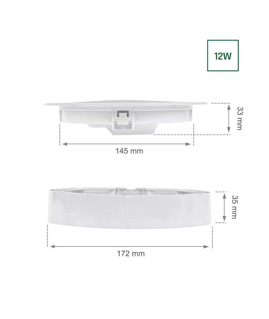 For enkel installasjon er lampen utstyrt med en integrert lyskilde, og må tilkobles en 230V forsyning. Den runde designen med en høyde på kun 35 mm gjør at den kan monteres nesten hvor som helst uten å være i veien.