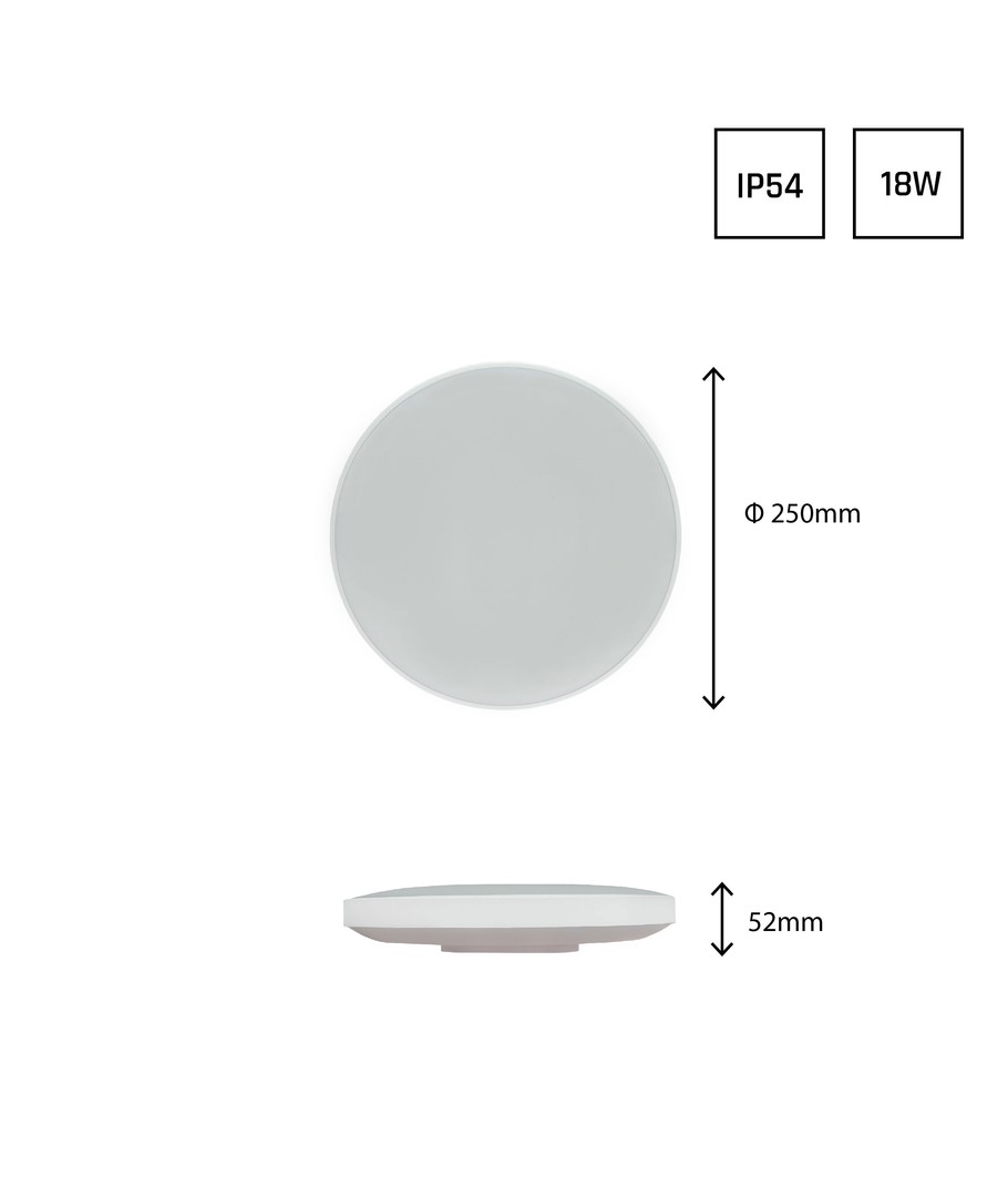 Med dimensjoner på 250 x 52 mm er NYMPHEA laget for å passe inn i ulike interiører uten å virke påtrengende. Dens IP54 klassifisering gjør den motstandsdyktig mot fukt og vannsprut på fronten, hvilket gir trygghet i våtromsmiljøer.