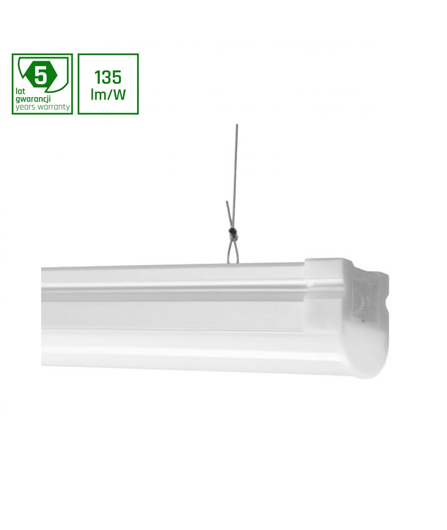 Dens slanke dimensjon på 1700 x 60 x 75 mm gjør at lampen kan passe inn i en rekke miljøer uten å ta opp unødvendig plass. Selv om den ikke er vannbestandig (IP20), passer den utmerket til innendørs bruk i tørre omgivelser.