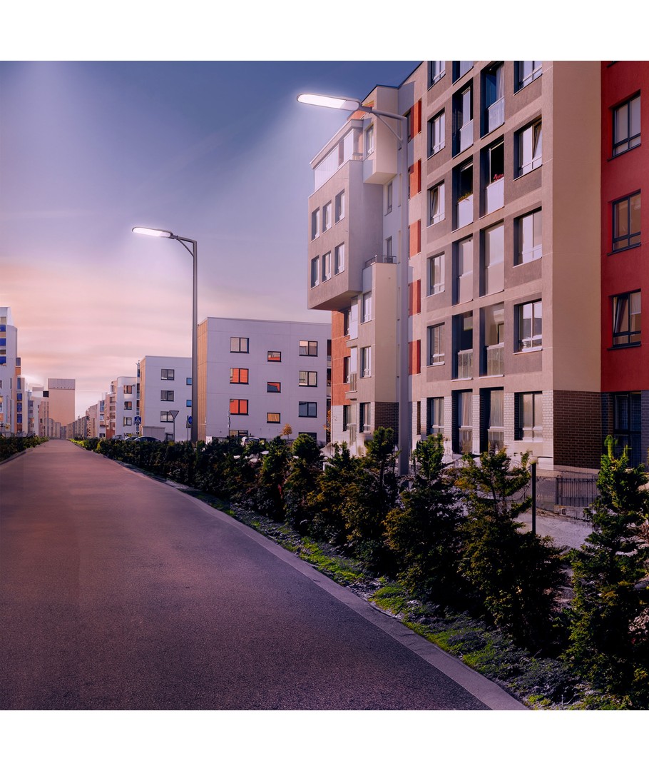 Lyset har en nøytral hvit fargetone (4000K), noe som gir et perfekt og effektivt arbeidsmiljø uten blå eller gule toner, slik at farger og motiver oppleves naturlig og nøyaktig. Utført med en profesjonell og pålitelig driver samt god kjøling, tilbyr dette gatelyset en robust løsning for langvarig bruk.
