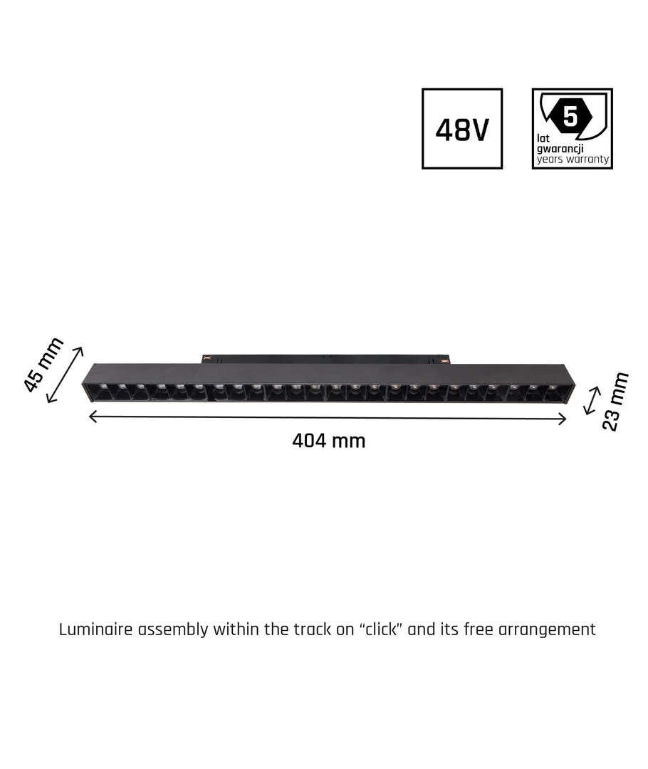 Lysarmaturet har dimensjoner på 440 x 23 x 42 mm og kommer i en stilren sort farge. Vær oppmerksom på at den har en IP20-rangering, noe som betyr at den ikke er vannbestandig.