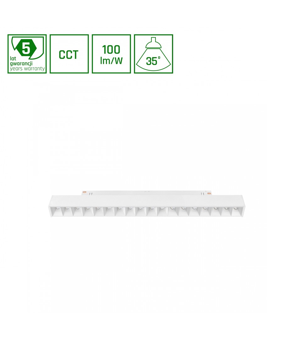 Dette moderne og effektive skinnelyset er ideelt for både profesjonell og hjemmebruk. Skinnelyset kommer i en stilren hvit finish og har en effekt på 17W, noe som sikrer kraftig og effektiv belysning.