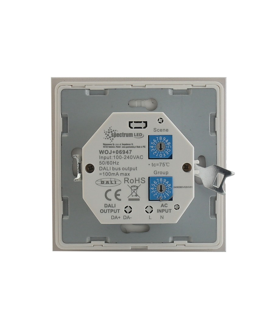 Den sentrale funksjonen til dette panelet er dets DALI-interface, som gir mulighet for presis dimming og lysstyring. Med en strømforsyning på 100mA, sørger det for pålitelig drift av tilkoblede armaturer, slik at du enkelt kan justere belysningen etter dine behov.