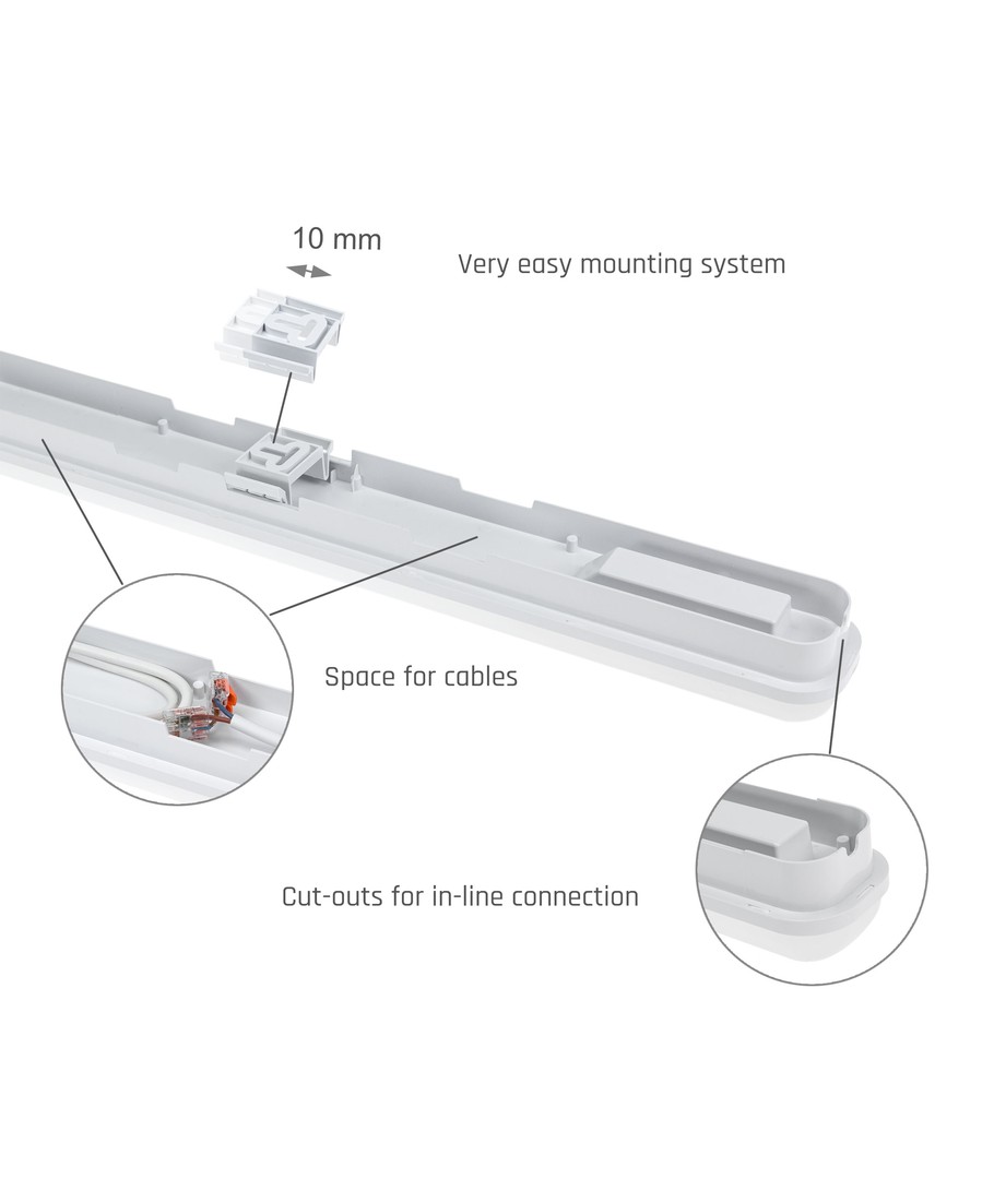 Armaturen tilbyr en nøytral hvit fargetone, som gir et perfekt, naturlig lys uten blå eller gule toner. Denne fargetonen skaper det mest effektive arbeidsmiljøet ved å vise farger som de virkelig er, noe som er ideelt for steder hvor nøye fargegjengivelse er avgjørende.