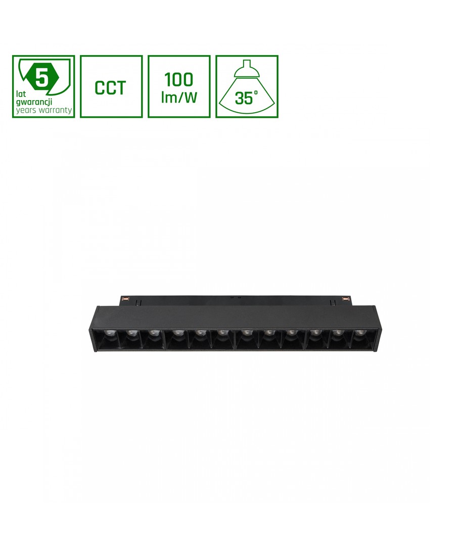 Denne belysningsløsningen gir både effektivitet og fleksibilitet for enhver setting. Med sin elegante svart finish og kompakte dimensjoner på 204 x 23 x 42 mm, passer den sømløst inn i de fleste rom.