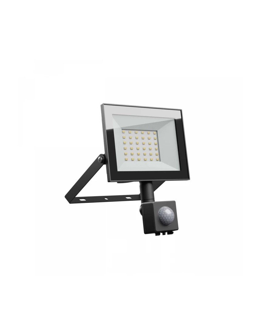 Oppdag den allsidige og kraftfulle 30W projektør med sensor i et stilrent sort design, som er perfekt for både private og kommersielle utendørs belysningsbehov.