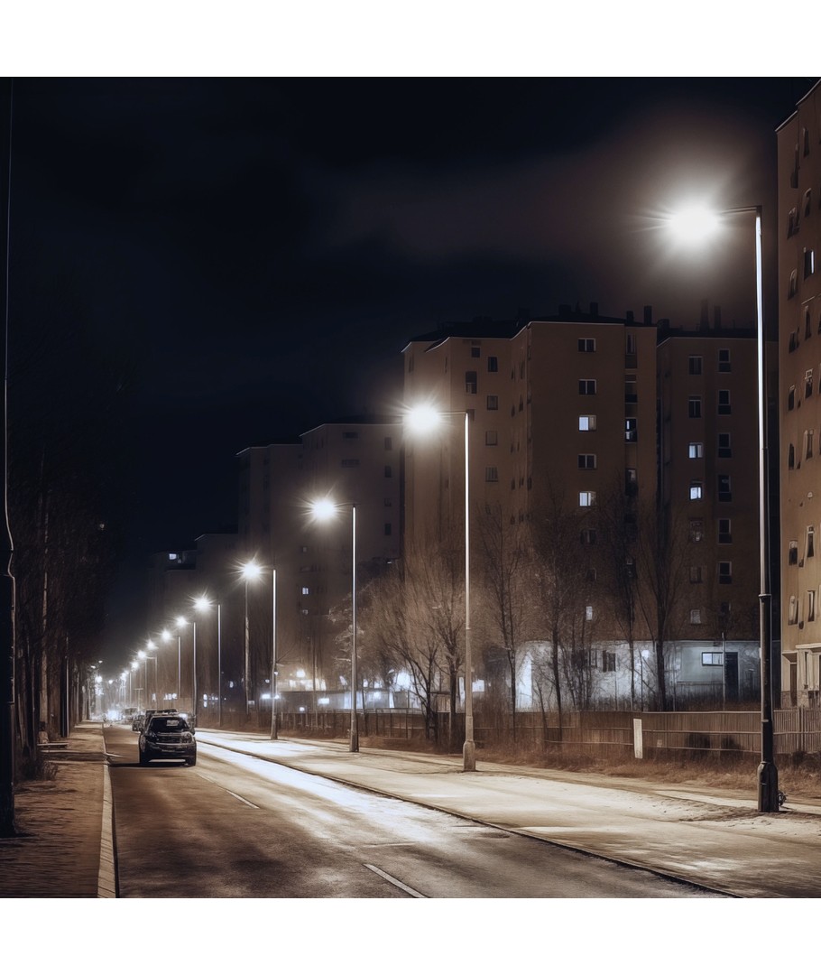 Opplev kraftig belysning med vår 50W LED gatelampe designet for effektivt å lyse opp utendørsområder med avanserte funksjoner og robust design.
