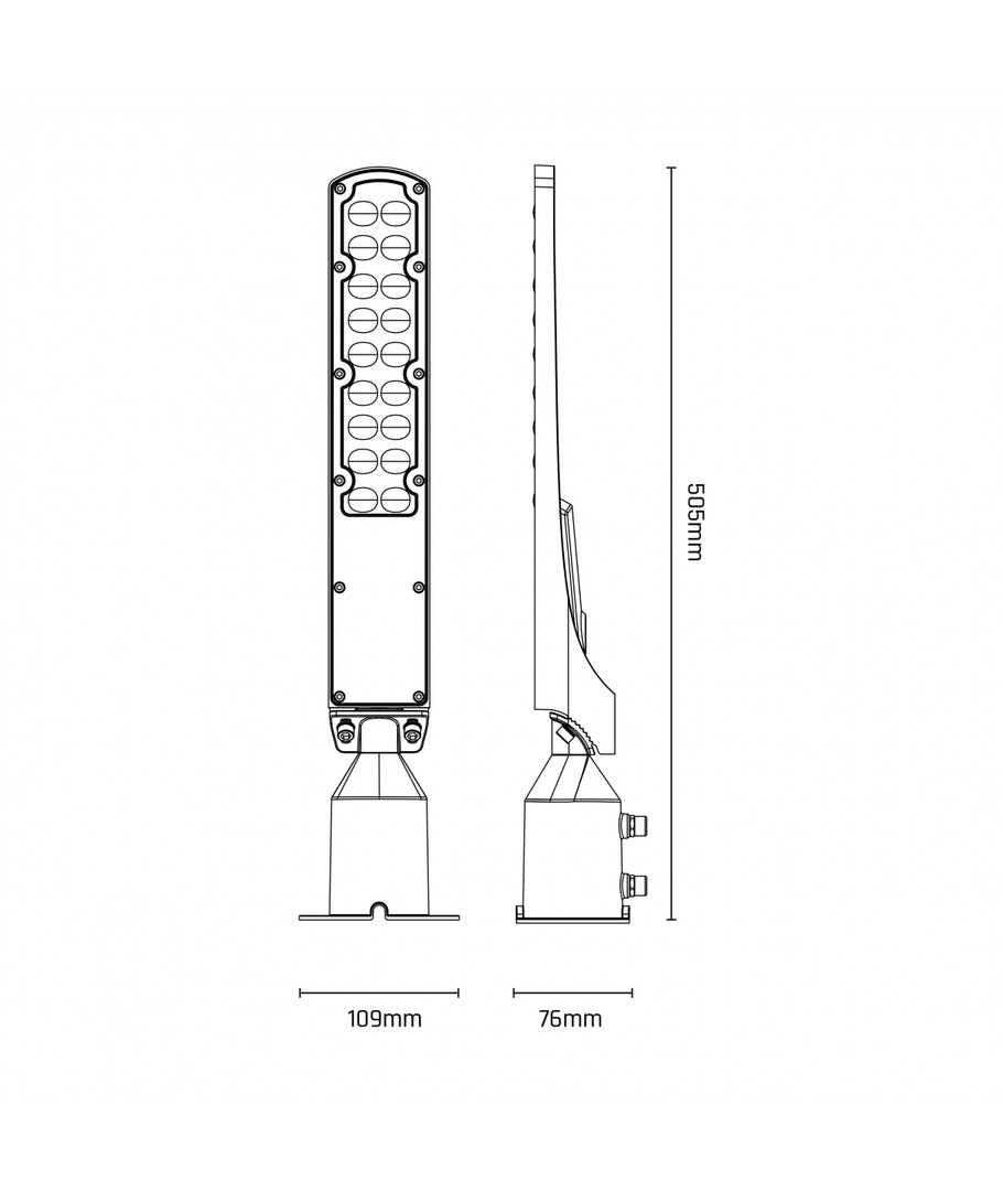 Det elegante og praktiske designet gjør denne lampen til et ideelt valg for både boligområder, næringsbygg, parkeringsområder og offentlige områder. Med en jevn og naturlig lysfordeling, gir den en behagelig og effektiv belysning som viser alle farger vakkert og genuint.