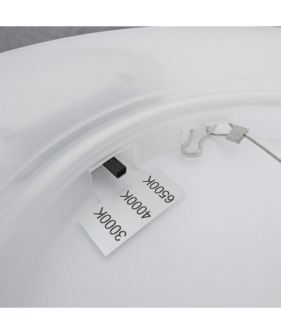 Med dimensjoner på Ø400x26 mm passer denne hvite, runde lampen perfekt i taket uten å dominere rommet. Den flate designen gjør at den ikke bare er funksjonell, men også et estetisk tilskudd. IP54-klassifiseringen betyr at den tåler fuktig luft og vannsprut, slik at den kan brukes i ulike rom og situasjoner.