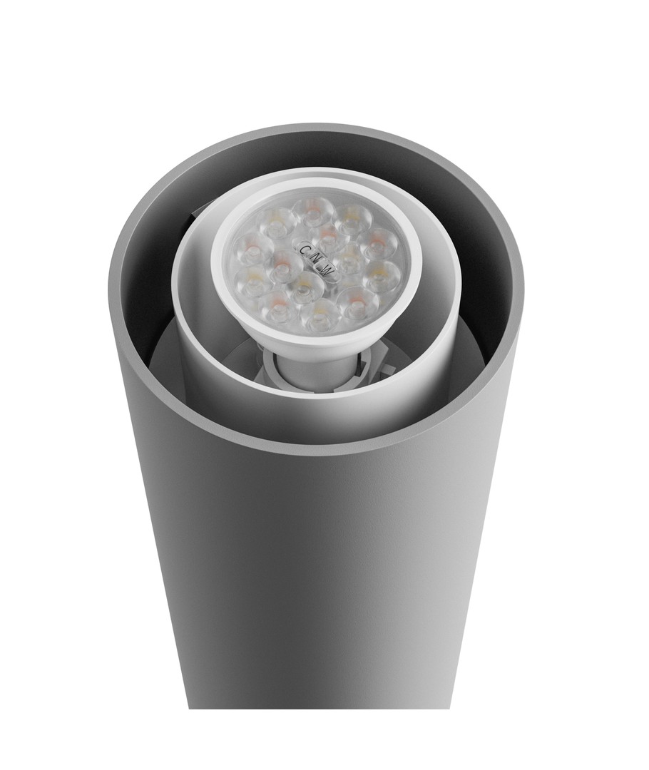 Med et elegant grått design, passer denne søylelampen perfekt inn i både moderne og klassiske uteområder. Den har en maximum effekt på 6W og bruker GU10 fatning, hvilket gjør det enkelt å bytte lyskilden etter behov.