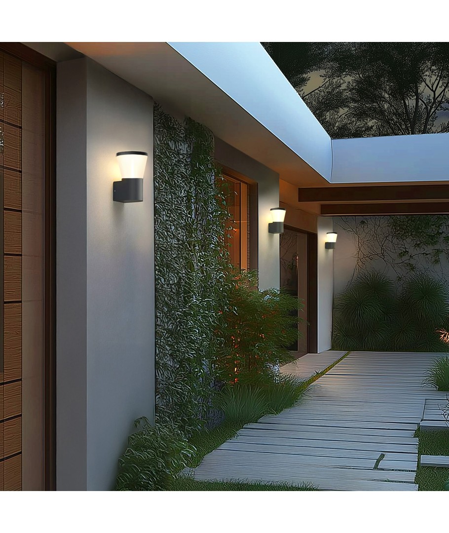 Designet for å tåle forskjellige væromgivelser, har denne lampen en IP44-klassifisering som gjør den motstandsdyktig mot fuktig luft og vannsprut, noe som gjør den ideell for bruk på fasaden av et hus eller i fuktigere rom som badet.