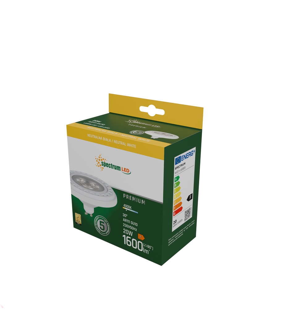 Oppnå enestående belysning med vår Ar111 LED 20W GU10. Denne kraftige lyspæren er designet for å gi 1800 lumen med et fokusert lys på 30 grader, som sikrer en målrettet og kontrollert belysning.