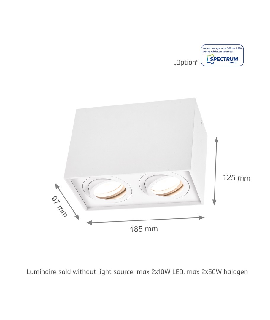 Den CHLOE DUO 2xGU10 er en stilren, justerbar lampe i hvitt rektangulært design, som passer perfekt til moderne hjem.