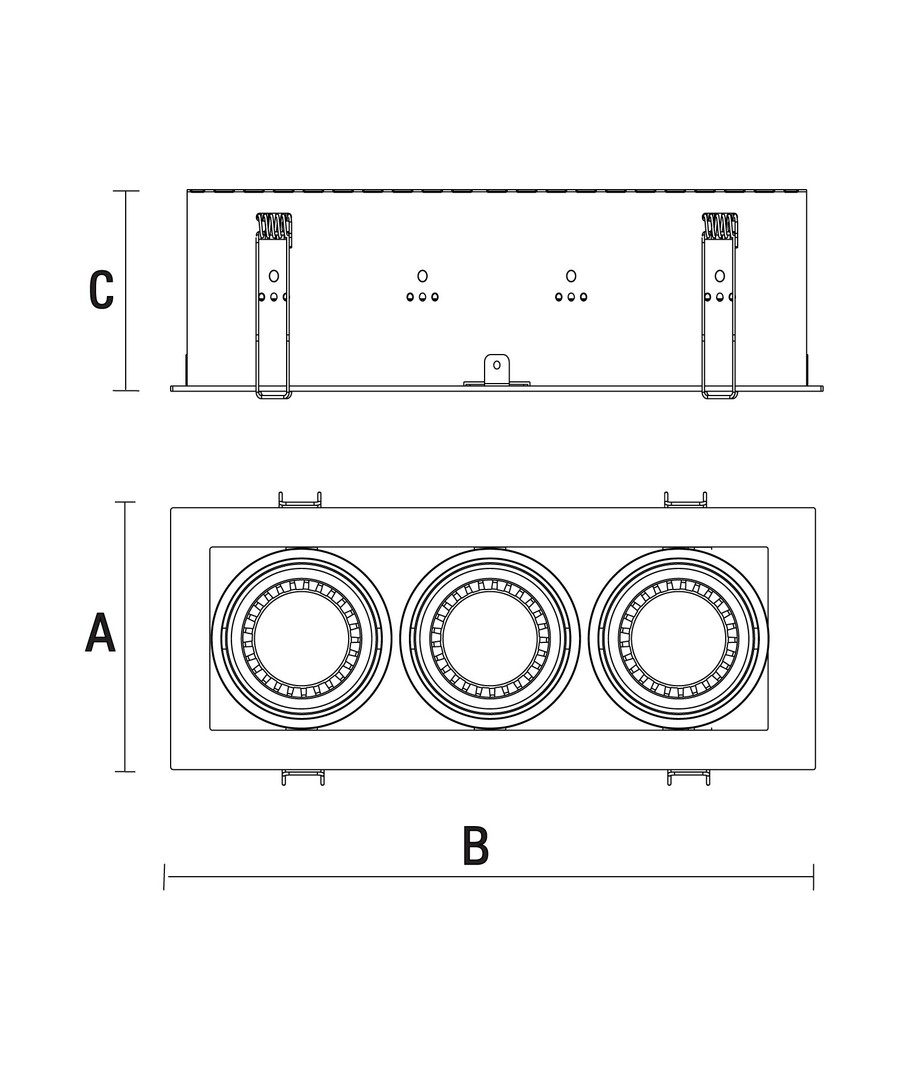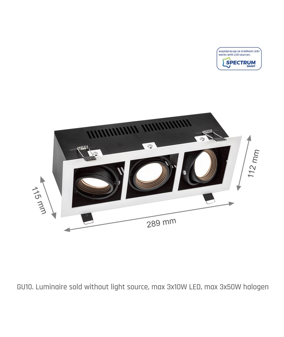Lampen har en kompakt og lett design med et elegant utseende. Med en total størrelse på 289 x 112 x 115 mm, er den ideell for både små og store rom. Lampens hul størrelse på 275x93 mm gjør installasjonen enkel og passer perfekt til ulike tak og overflater.
