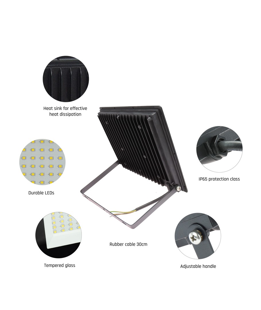 Opplev en kraftig lysopplevelse med en effekt på 100W og imponerende 9400 lumen. Lyskasteren er designet for å kobles til en 230V forsyning, og med en høy lysspredning på 100 grader gir den en jevn fordeling av lys til ethvert område.