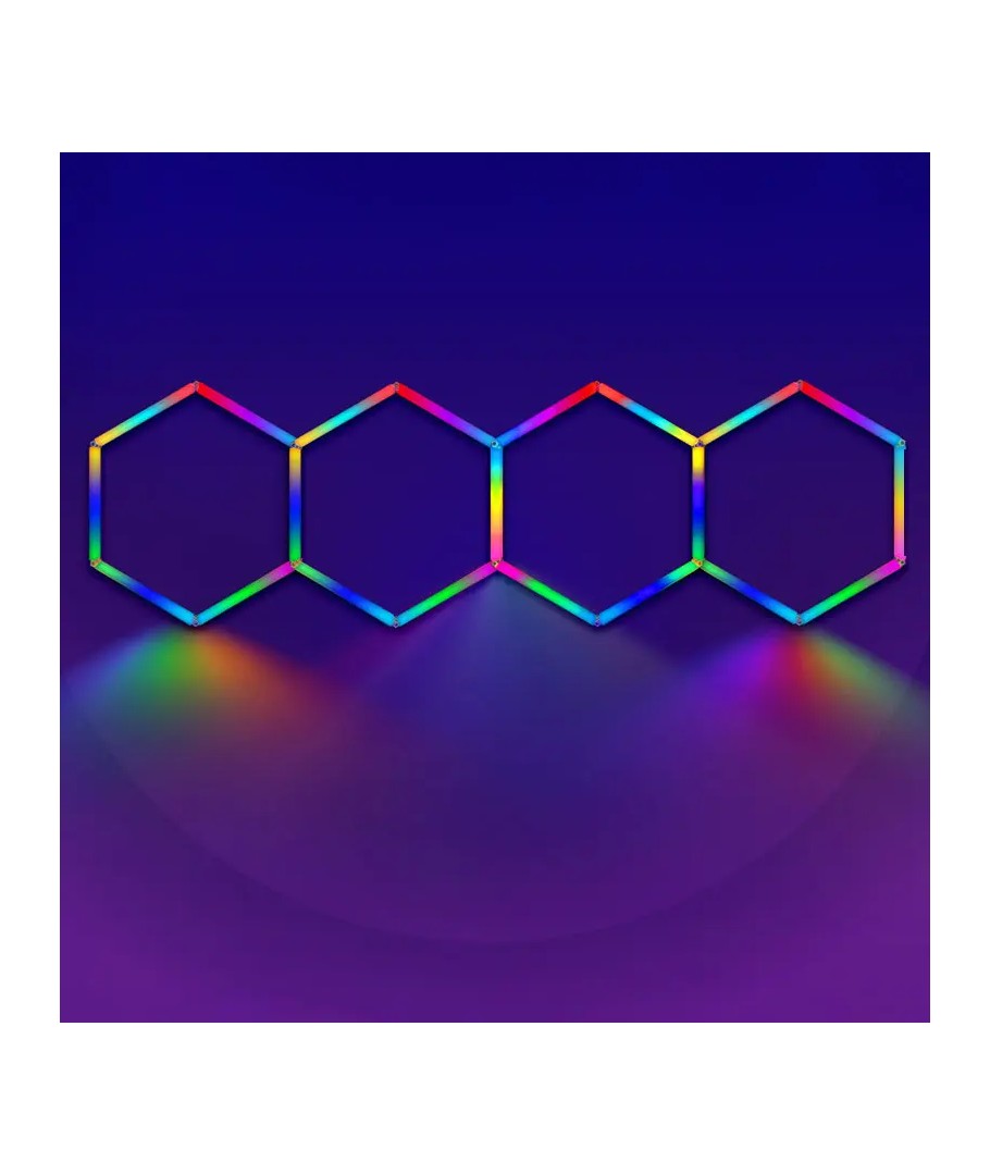 Med Hexagon RGBIC 4 felt komplett sett får du en alt-i-ett belysningsløsning som kombinerer teknologi og design for å skape den perfekte atmosfæren i ethvert rom.