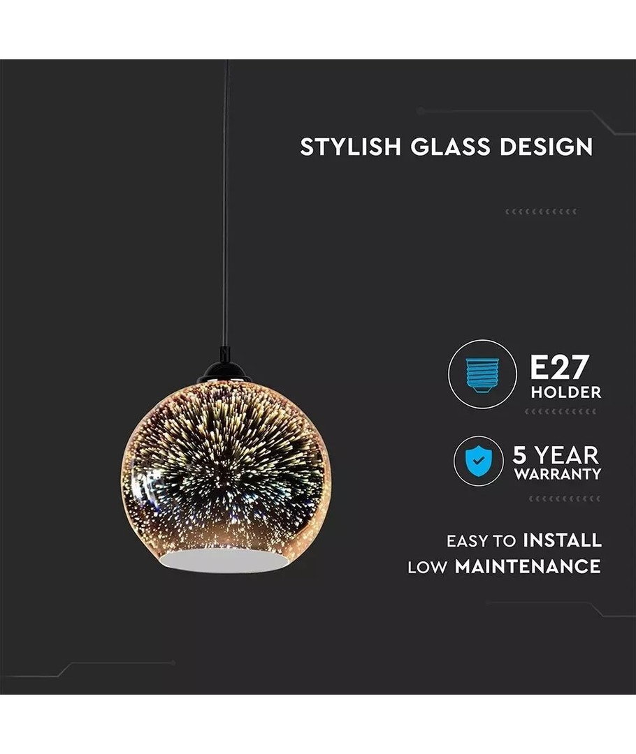 Bring en ny dimensjon av lys og dekor inn i hjemmet ditt med V-Tac 3D Glass pendellampe. Med pålitelig kvalitet og moderne design, vil den bli et samtaleemne for gjester og en kilde til selvtillit og komfort i din innredning.